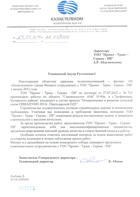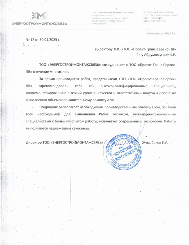 Компания ТОО «Проект-Транс-Сервис-ПВ» работает на рынке более 15 лет, предоставляя услуги в области проектирования, строительства и обслуживанию антенно-мачтовых сооружений, инфраструктуры связи и энергетики. За это время мы завершили более 1000 проектов, обеспечив высокое качество и надежность каждого.